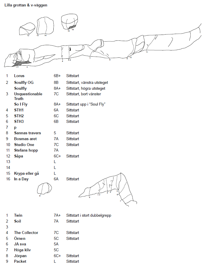 Lilla grottan & V-väggen, Fruberget klätterområde